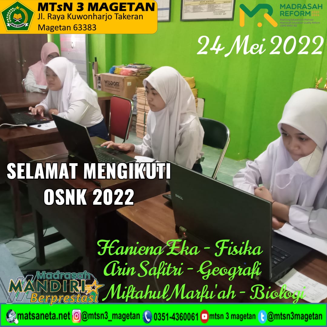 Diantaranya haniena Eka (Mapel Fisika), Arin Safitri (Biologi), dan Miftahul Marfu'ah (Geografi). Srikandi-srikandi Matsaneta inilah yang lolos mengikuti OSNK pada tahun 2022.