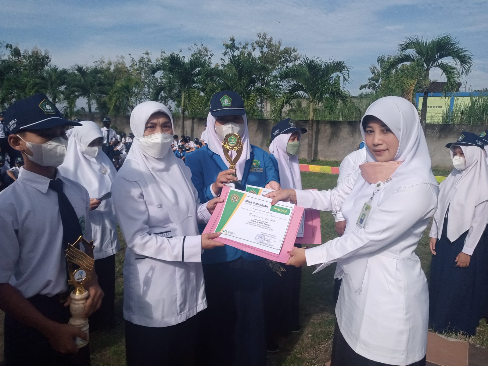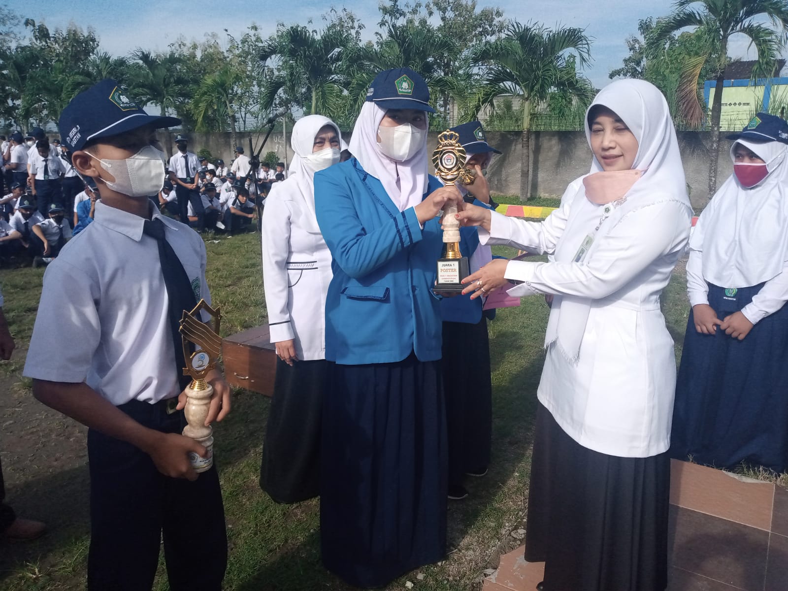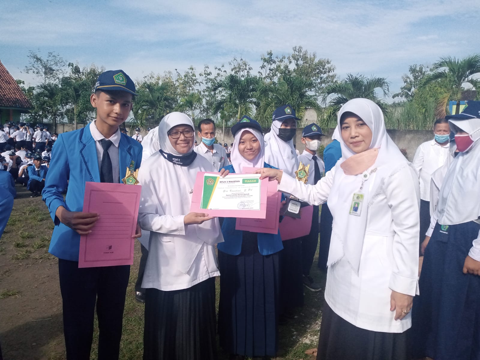 Selesai upacara diadakan acara pemberian reward kepada siswa yang berprestasi juga kepada guru yang berprestasi dalam mendampingin siswa siswinya.