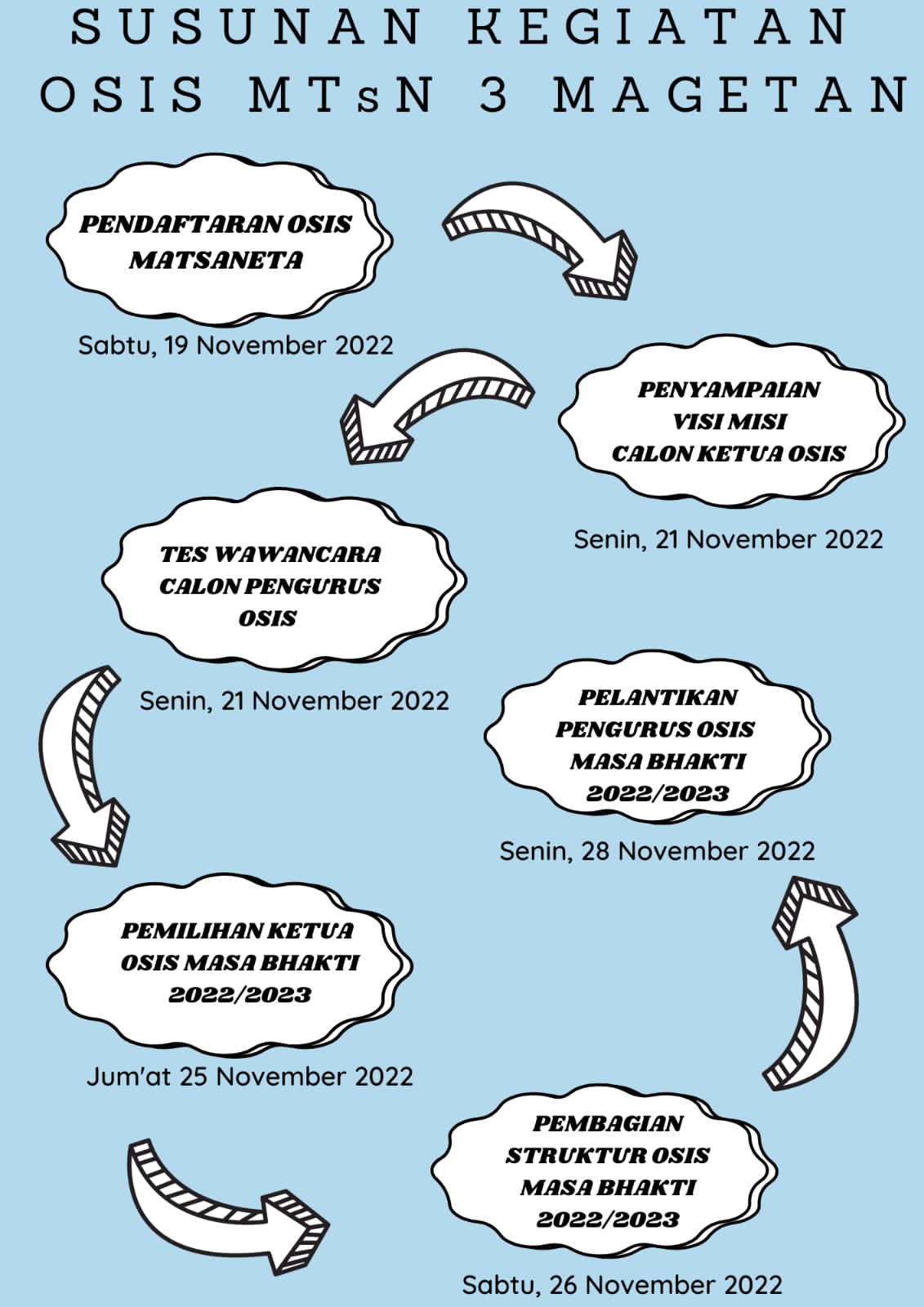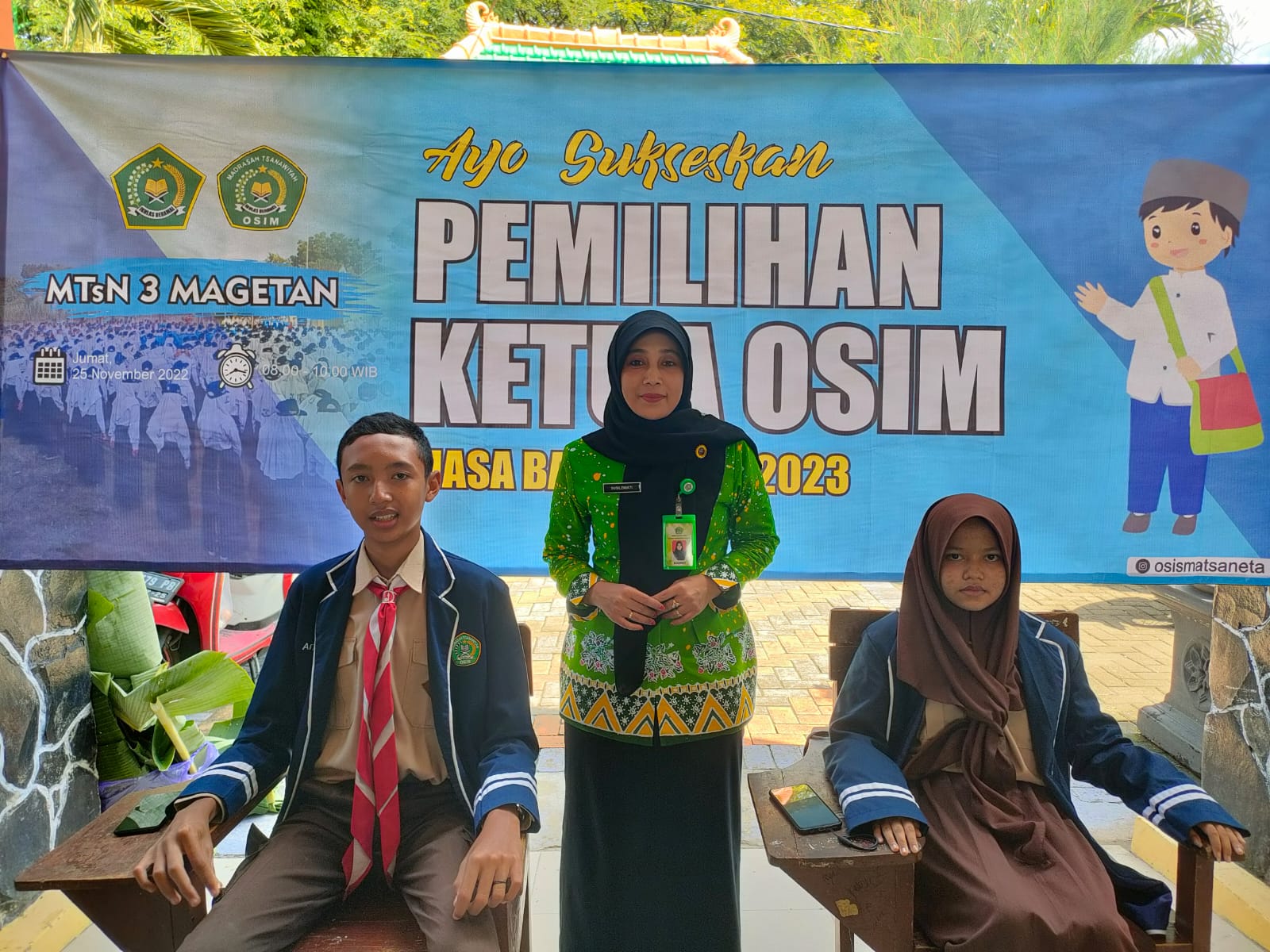Matsaneta (25/11), Dalam rangka memberikan pendidikan demokrasi melalui pengalaman praktis, maka untuk pemilihan ketua OSIM MTsn 3 Magetan Masa Bakti 2022/2023 dilakukan dengan sistem pemungutan suara oleh seluruh warga madrasah secara terbuka di halaman depan madrasah. Pemilihan ketua OSIM MTsN 3 Magetan dilaksanan pada Jum'at, 25 November 2022. Setelah berakhirnya masa tugas pengurus OSIM Masa Bakti 2021/2022. Pada kesempatan ini pemilihan ketua OSIM MTsN 3 Magetan dilakukan dengan cara pemungutan suara secara langsung.